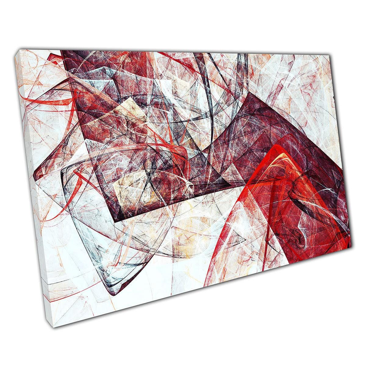 Enhance your home or office décor with this striking abstract canvas print, featuring dynamic angular shapes in bold red and white tones. This modern wall art serves as a captivating focal point, drawing attention and inspiring conversation in any setting.