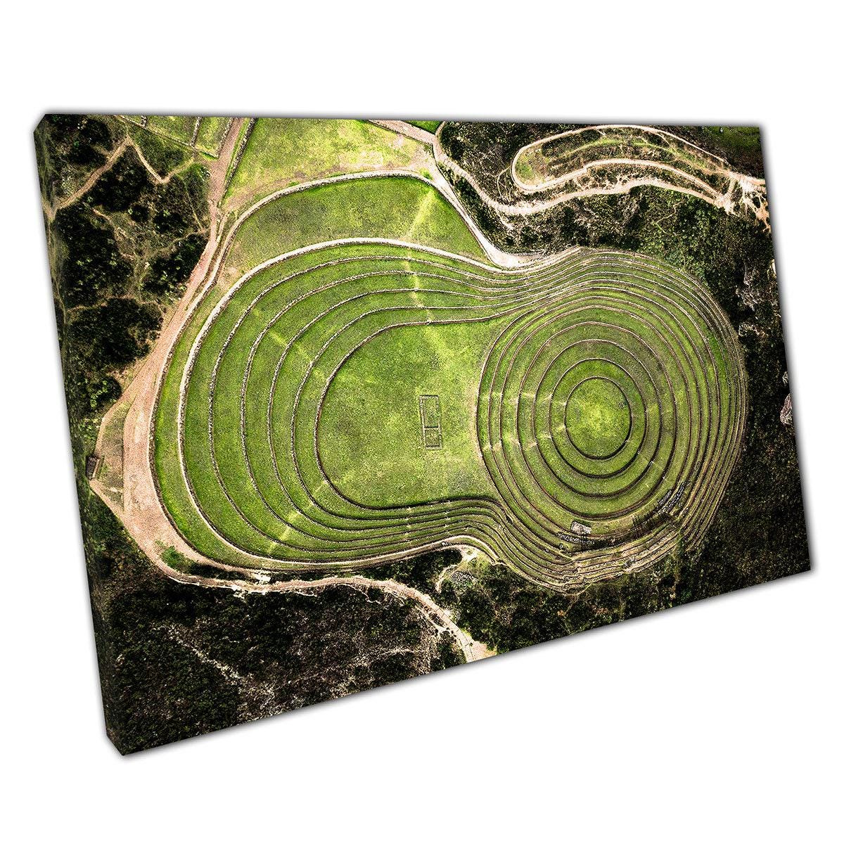 Experience the stunning Aerial View of the Moray Archaeological Site, a remarkable Inca ruin nestled in the Maras region of Cusco Province, Peru. This exquisite wall art print, crafted on high-quality canvas, adds a distinctive cultural element to your home or office décor, appealing to those who appreciate historical landmarks and vibrant landscapes.