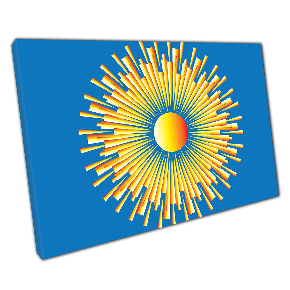 Printed on high-quality matte polyester canvas with a weight of 260gsm, this lightweight canvas features a smooth surface and a tight weave pattern, ensuring that the intricate details of the sunburst design stand out vividly. The canvas frame is expertly crafted in the UK from durable redwood timber mouldings, providing robust support with a depth option of either 20mm or 35mm.