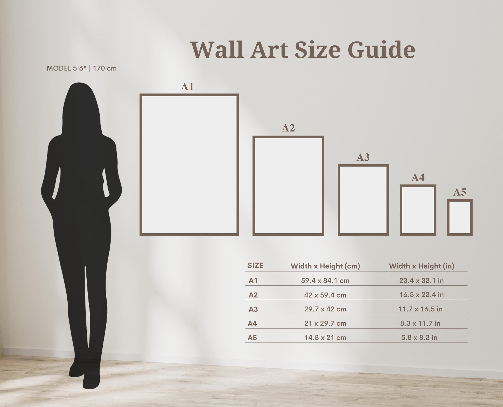 Our triptych (3-piece) wall art options include three 30x64cm (12x25 in) pieces, totalling 91x64cm (36x25 in) without spaces, or three 48x99cm (19x39 in) pieces, totalling 145x99cm (57x39 in). For pentaptych (5-piece) wall art, we offer five 20x71cm (8x28 in) pieces, totalling 101x71cm (40x28 in) without spaces, or five 33x114cm (13x45 in) pieces, totalling 165x114cm (65x45 in).