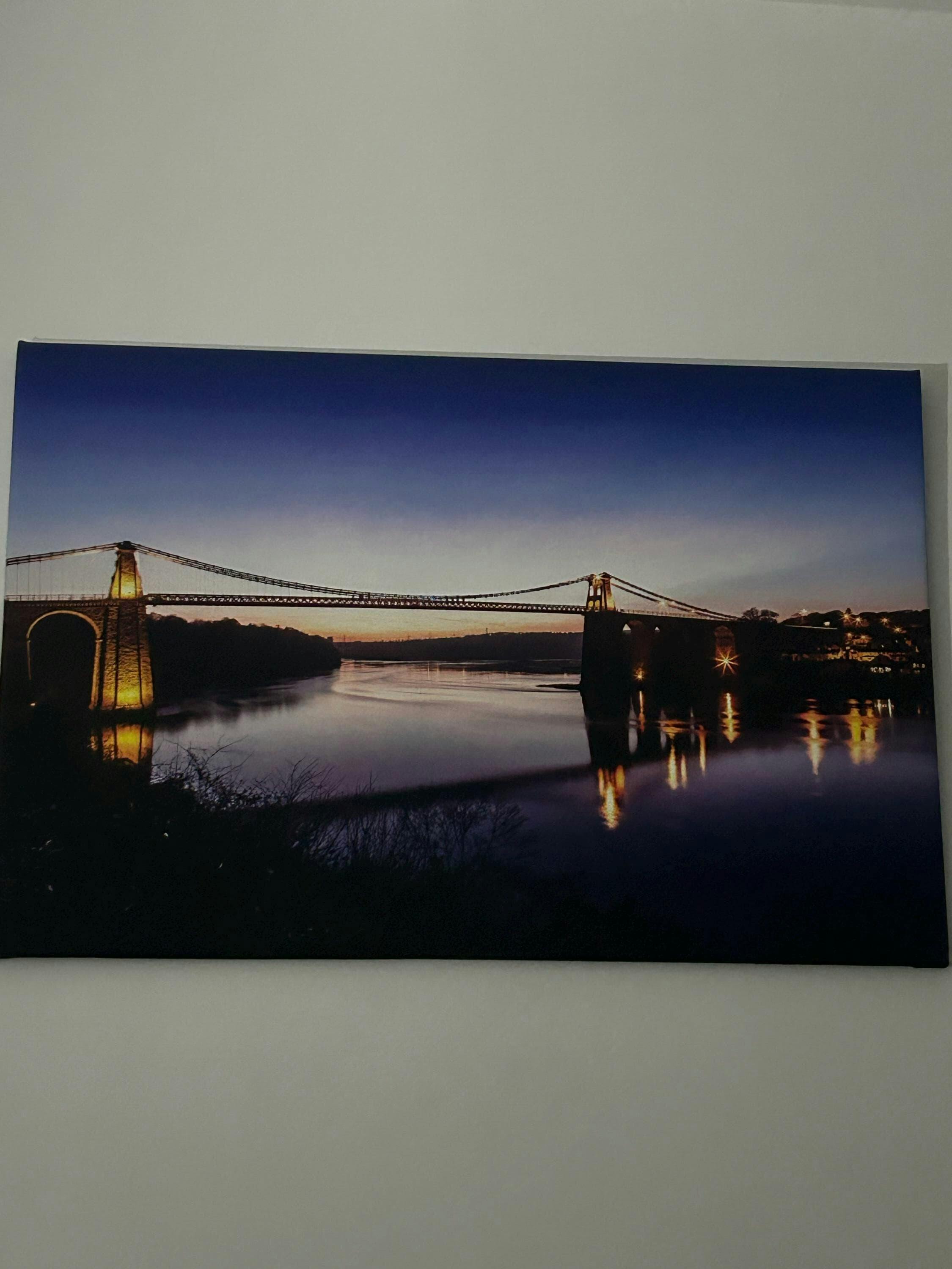 Enhance your environment with this stunning representation of the Menai Suspension Bridge and infuse your space with a touch of Anglesey's beauty.
