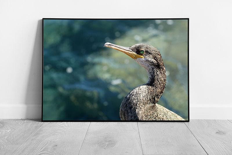 Enhance your home or office decor with our stunning wall art print featuring a wild grey duck gracefully poised on the seashore. This captivating artwork beautifully captures the serene essence of the natural world, set against a tranquil and softly blurred blue seascape, bringing a sense of calm to any environment.