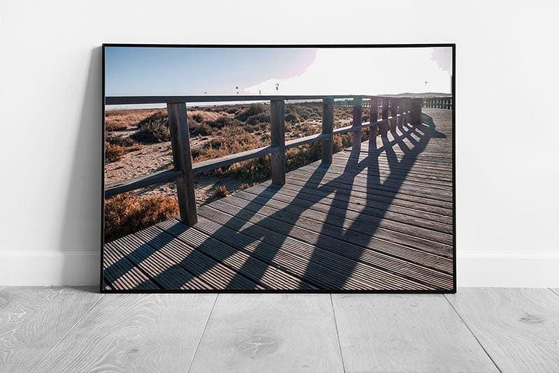 Immerse yourself in the essence of beach life with our captivating wall art print, showcasing a sturdy wooden pier that leads to a vibrant beach bustling with kite surfers. Produced in the UK, this artwork is crafted using advanced technology and high-quality materials, ensuring sharp details, consistent colors, and vivid tones that enhance your decor.